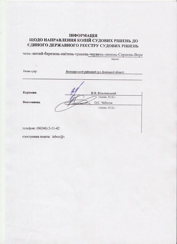 Перелік відомостей, що становлять службову інформацію в Микільському районному суді Донецької області