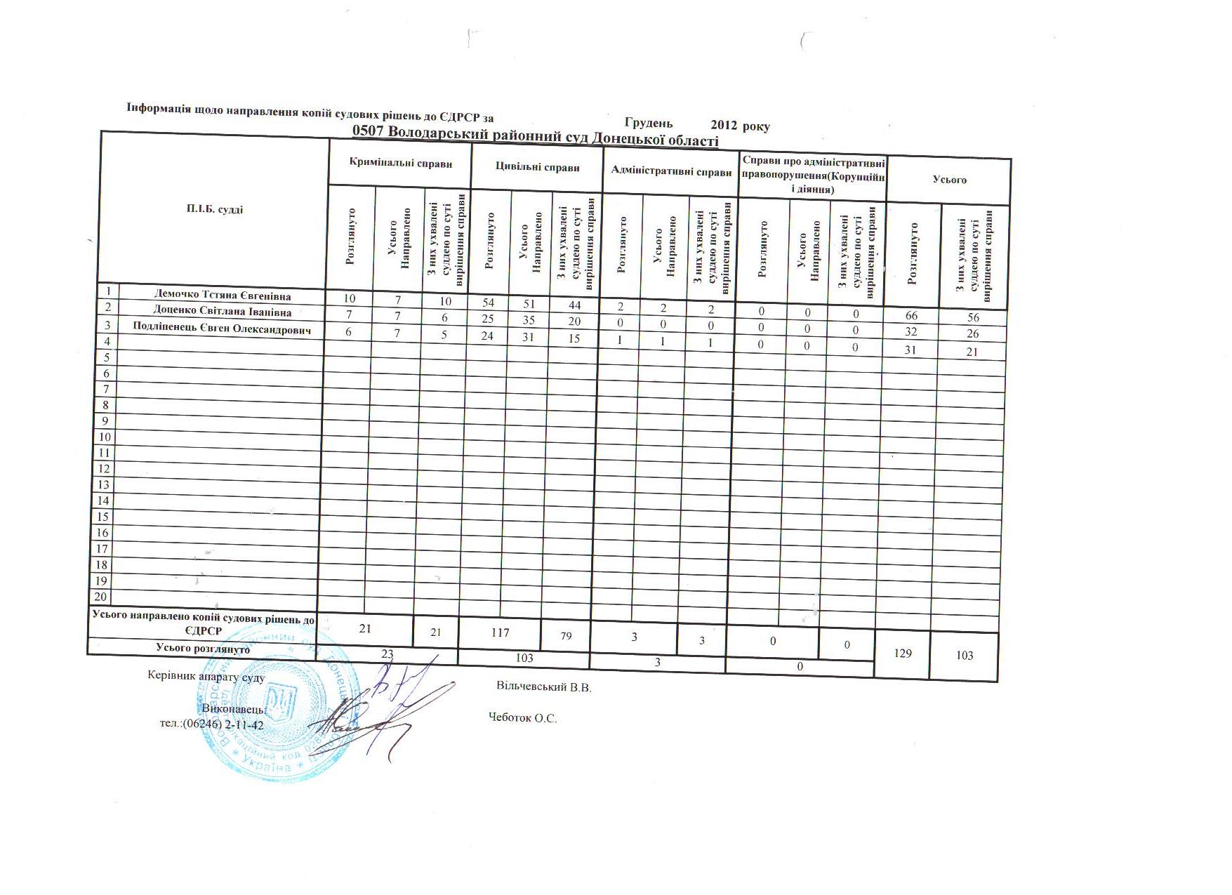 Показники діяльності суду за півріччя та рік
