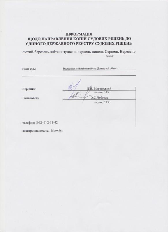 Перелік відомостей, що становлять службову інформацію в Микільському районному суді Донецької області