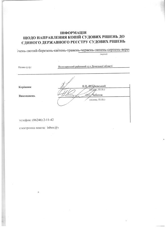 Перелік відомостей, що становлять службову інформацію в Микільському районному суді Донецької області