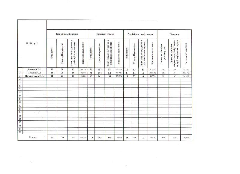 Показники діяльності суду за півріччя та рік