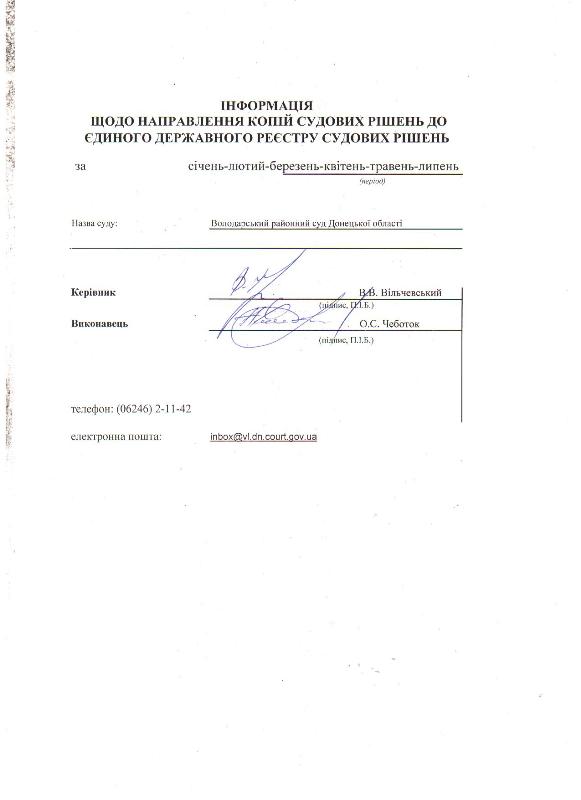 Перелік відомостей, що становлять службову інформацію в Микільському районному суді Донецької області