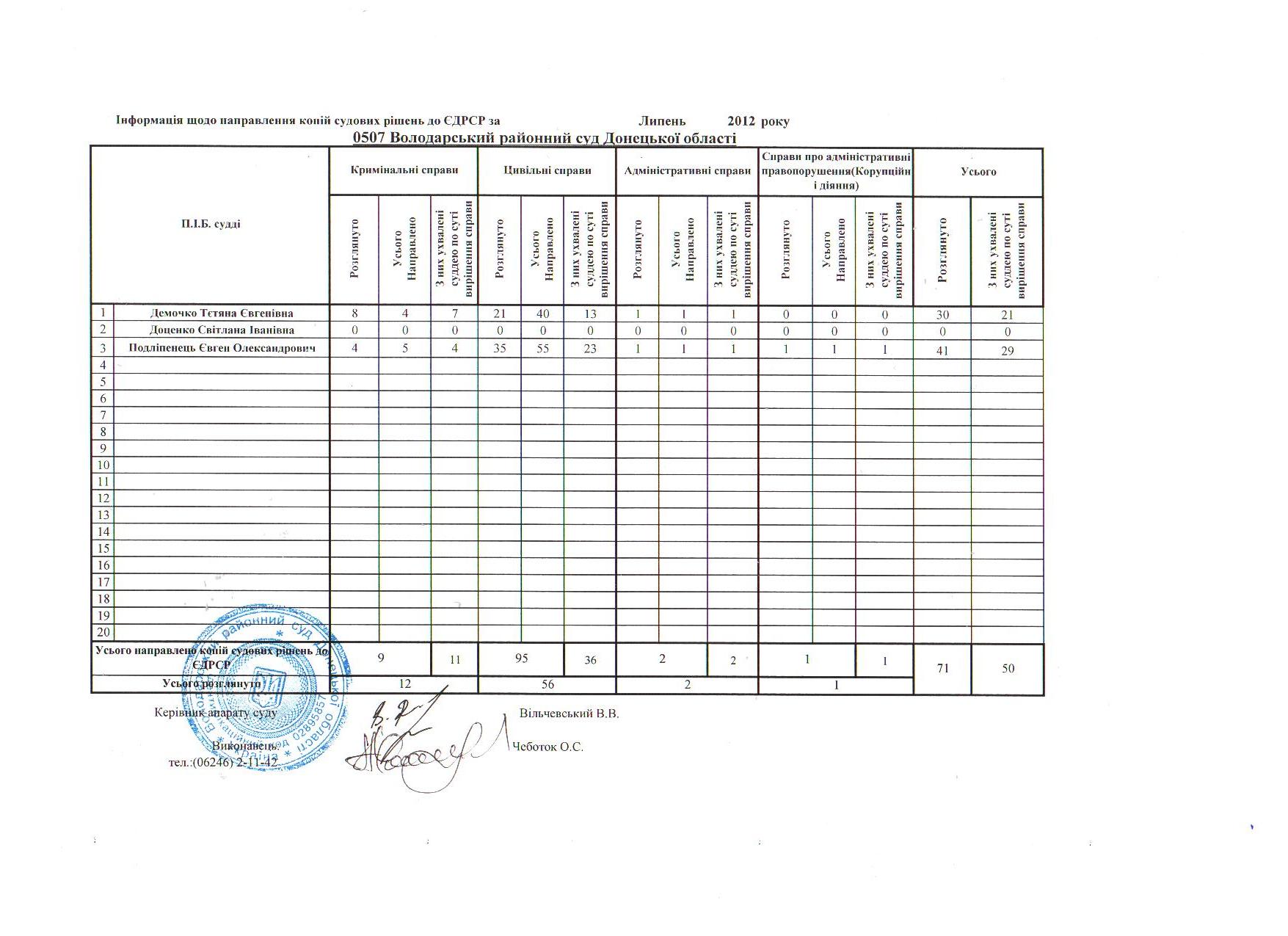 Список автопризначенних справ, що надійшли вперше (з 21.07.2014р.)