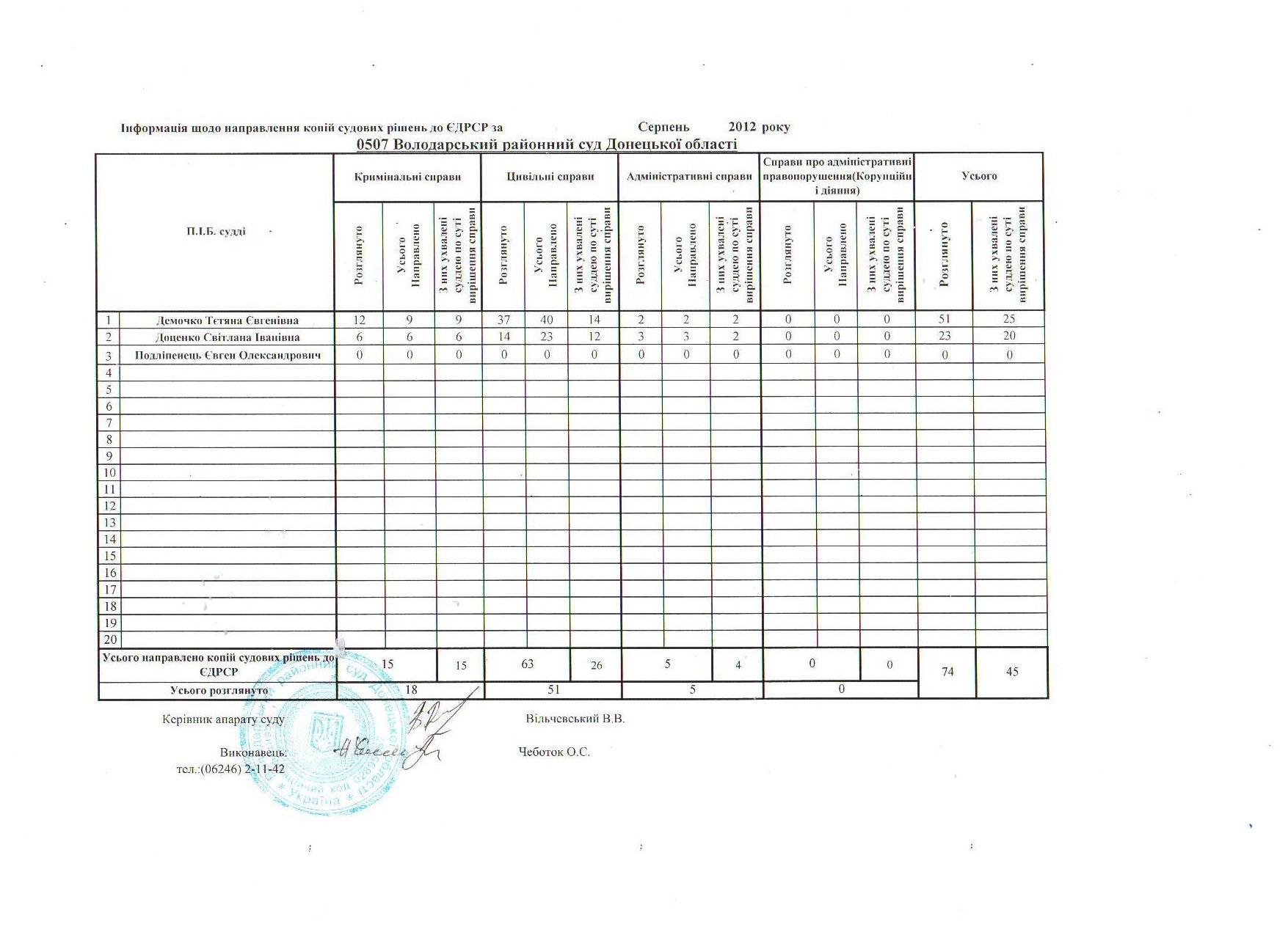 Список автопризначенних справ, що надійшли вперше (з 21.07.2014р.)