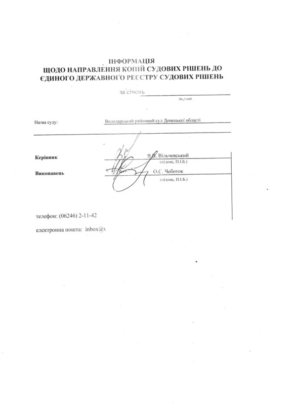 Перелік відомостей, що становлять службову інформацію в Микільському районному суді Донецької області